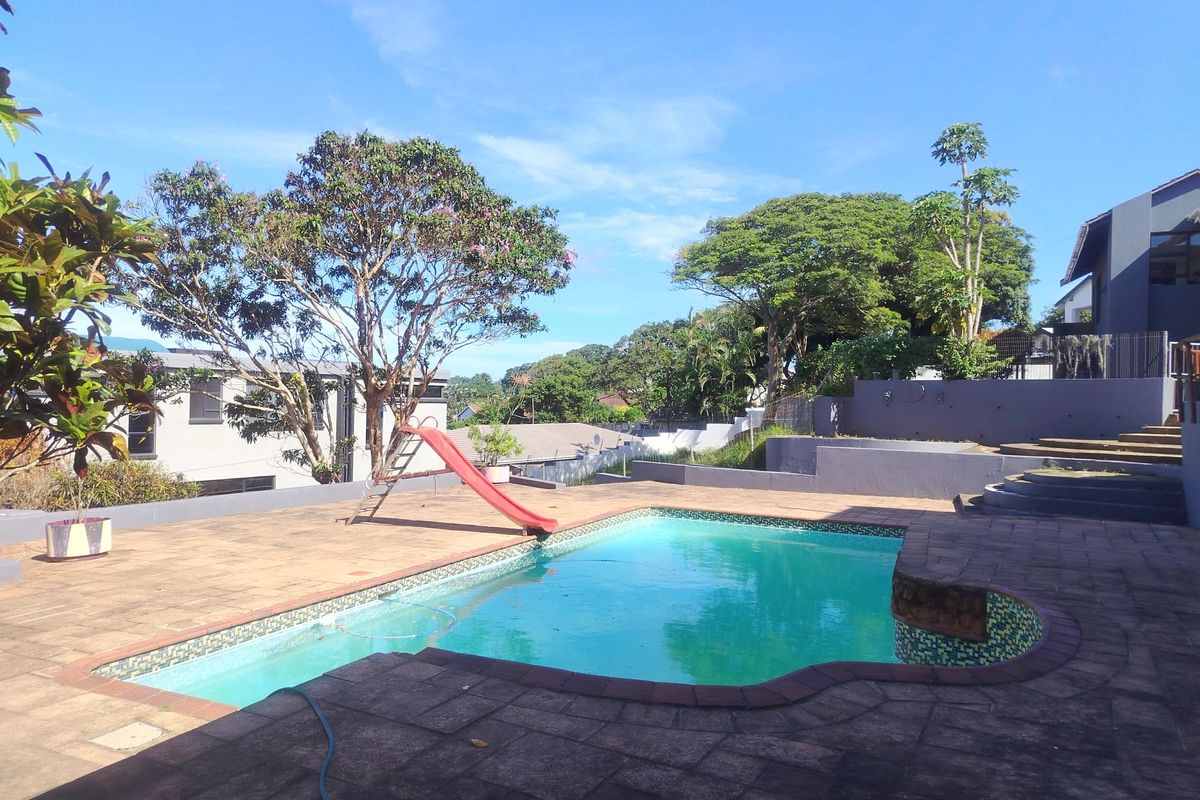 Relaxed Shelly Beach living with easy access to shops and sea, shared swimming pool and secure grounds; two-bedroom, one-bath unit with covered parking, water included, prepaid electricity.