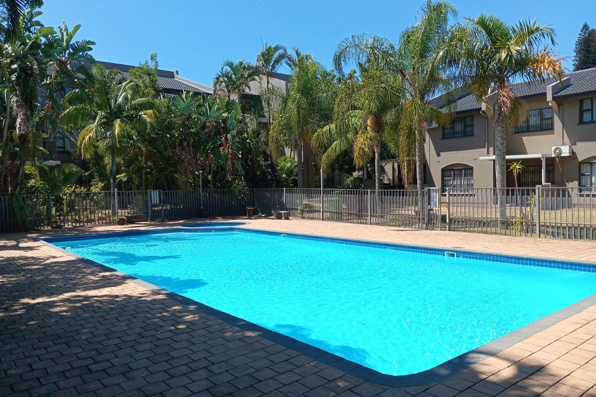 Relaxed coastal living in Richards Bay Central with tropical gardens, large communal pool and twin brick BBQ areas; fully furnished three-bedroom, two-bath home with one covered parking.