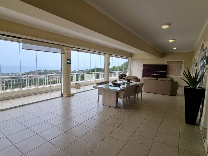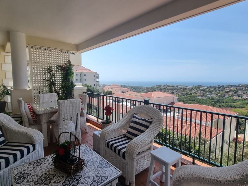 Coastal estate lifestyle near Umhlanga and Gateway — Ilala Ridge living with enclosed balcony and sweeping sea views, open-plan layout, partially furnished, four bedrooms, three baths and double garage.