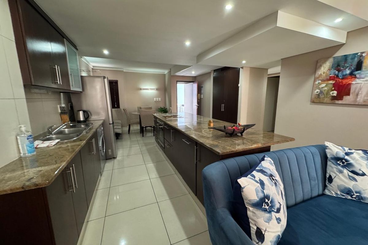 Discover contemporary living in the heart of Umhlanga. This spacious FULLY FURNISHED two bedroom, two bathroom apartment is perfectly situated directly opposite Gateway Mall, offering unmatched convenience and vibrant urban living.