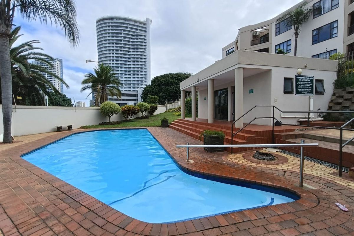 Easy coastal living near Oceans Mall and Umhlanga Beaches, with an enclosed patio opening to communal gardens and fenced pool. Ground-floor unit with two bedrooms and two bathrooms.