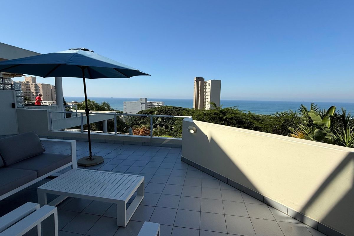 An exclusive complex located on a quiet road with views that stretch from Durban to Umhlanga, fully furnished bar bedding and linen. Three spacious bedrooms and two full bathrooms, the main being en suite. The kitchen is well equipped and ready for any culinary challenge. Large windows allow abundant natural light to flow through the open plan lounge and dining room. An expansive covered patio is ideal for relaxing and unwinding while taking in the surrounding splendour. The apartment is fully air conditioned.