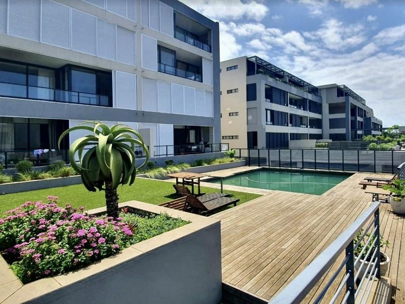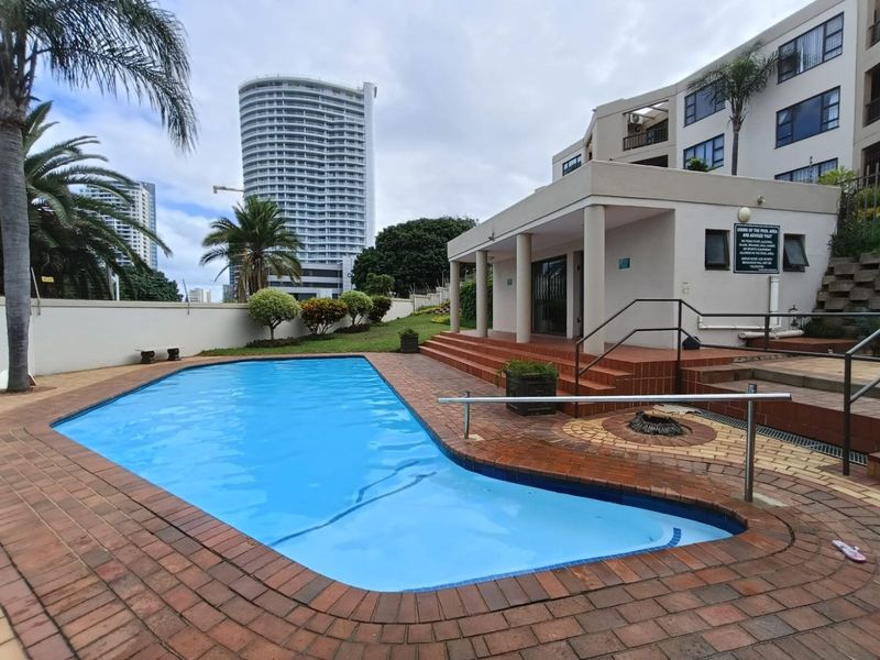 Easy coastal living near Oceans Mall and Umhlanga Beaches, with an enclosed patio opening to communal gardens and fenced pool. Ground-floor unit with two bedrooms and two bathrooms.