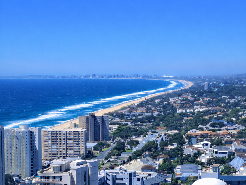 Seaside living in vibrant Umhlanga Rocks with panoramic sea views from a private balcony — contemporary 2-bedroom, 2-bath apartments with AC, gym, pool access and two secure parking spaces.