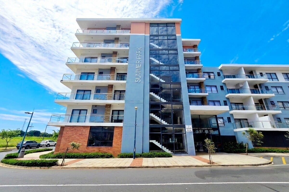 Enjoy vibrant Umhlanga Ridge living with shops, schools and dining nearby; secure complex offers a long balcony, communal pool and gym — two-bedroom, two-bath apartment with lift access.