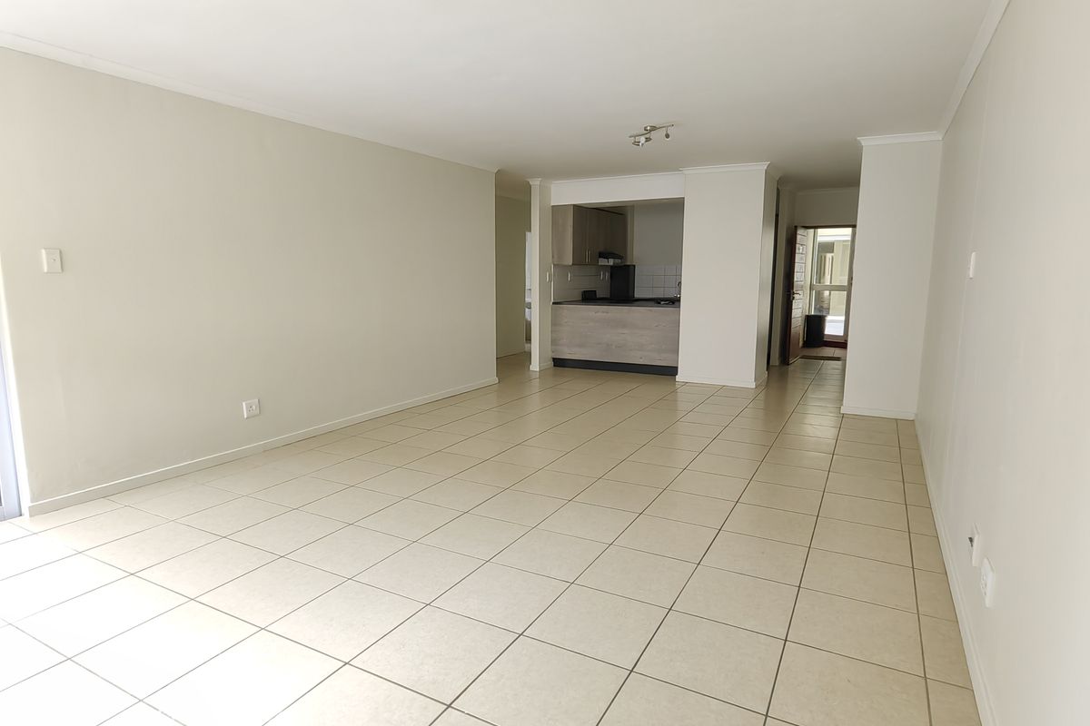 The unit is tiled throughout with an open plan living space and fully fitted kitchen. The kitchen offers ample cupboard and cabinet space, free standing electric stove and connection for your washing machine.