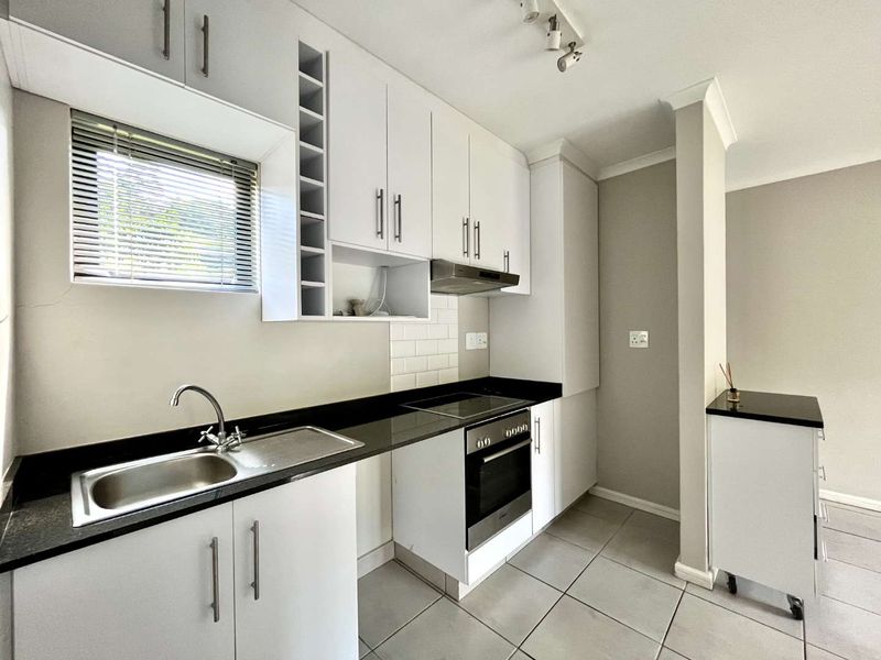 Relax in secure Waterfall estate living at The Woods — walking trails, clubhouse and pool, bright open-plan ground-floor apartment with private garden and scenic views. One bedroom, one bath.