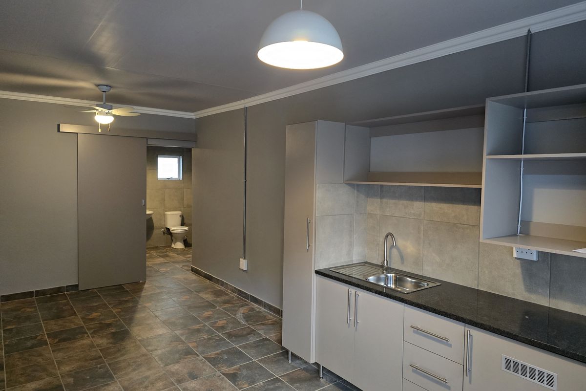 Live conveniently in Mooinooi Town with modern one-bedroom bachelor flats, private kitchenette and walk-in shower, communal pool and braai area—includes carport and prepaid electricity.