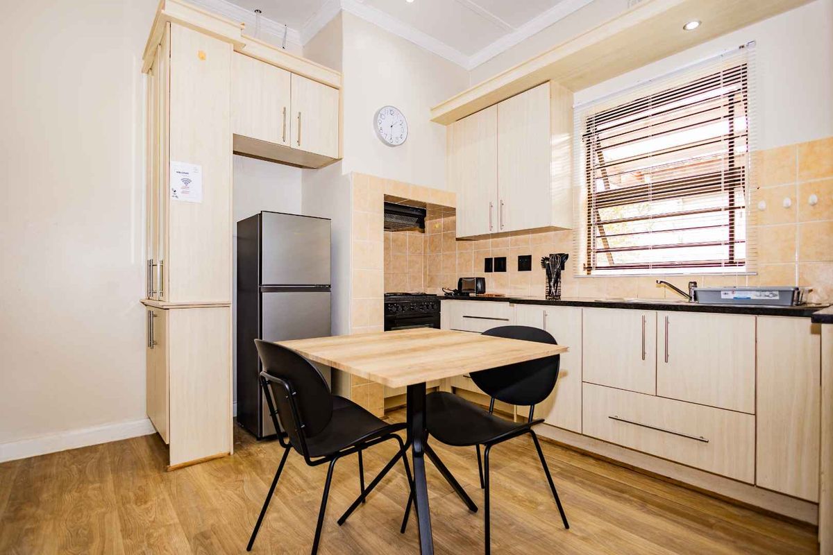 This comfortable unit includes a full-size kitchen with an oven, fridge, microwave, and all the essentials for self-catering, along with a small table for dining or work.