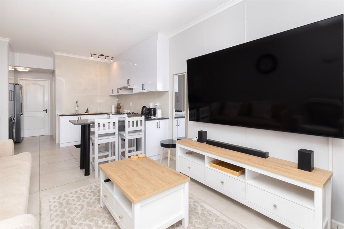Beachside living in Big Bay village with cafés, shops and seaside access; ground-floor, renovated one-bedroom apartment featuring an open-plan modern kitchen and private balcony, plus 24-hour security.