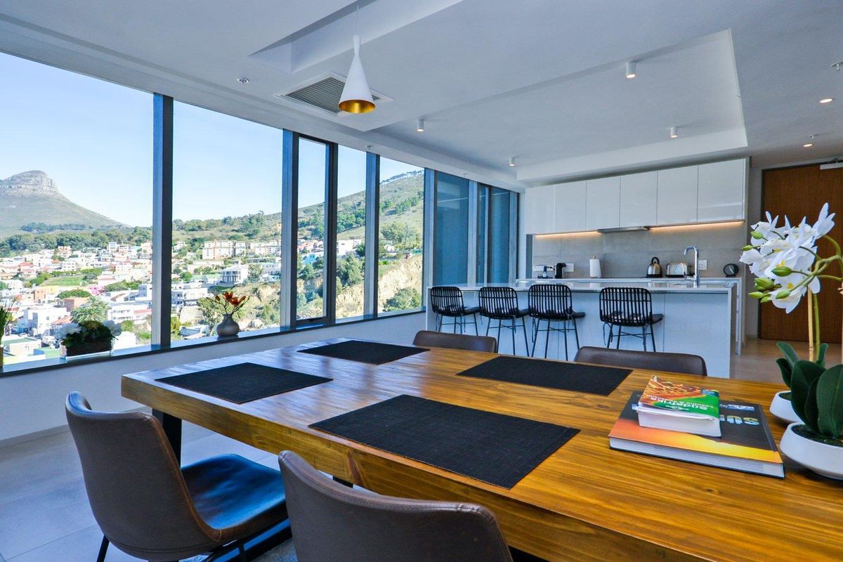 Experience vibrant City Bowl living steps from De Waterkant cafés and shops; 12th-floor apartment with sweeping city and mountain views, open-plan kitchen, two bedrooms and two bathrooms.