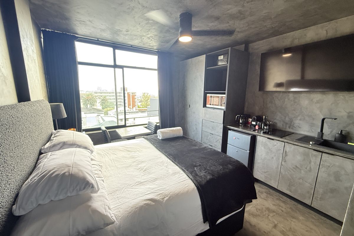 Vibrant Kloof studio steps from acclaimed restaurants and town amenities, offering lively street views and convenience. One bathroom; visitor parking arrangements available, double deposit required.