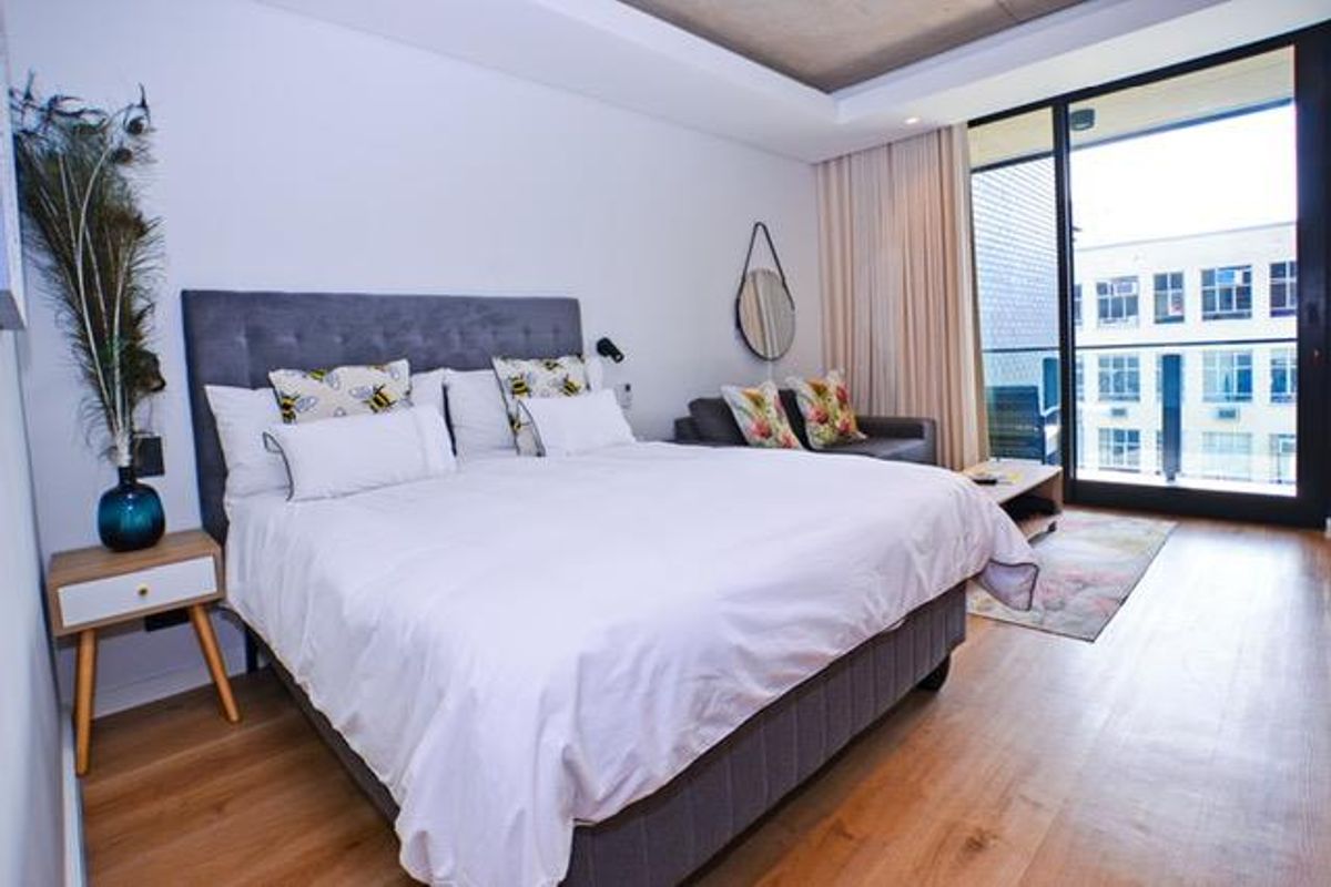 Live steps from Sea Point's vibrant dining and spa scene in a furnished studio with balcony, queen bed and smart TV; building boasts rooftop pool, gym and communal workspaces.