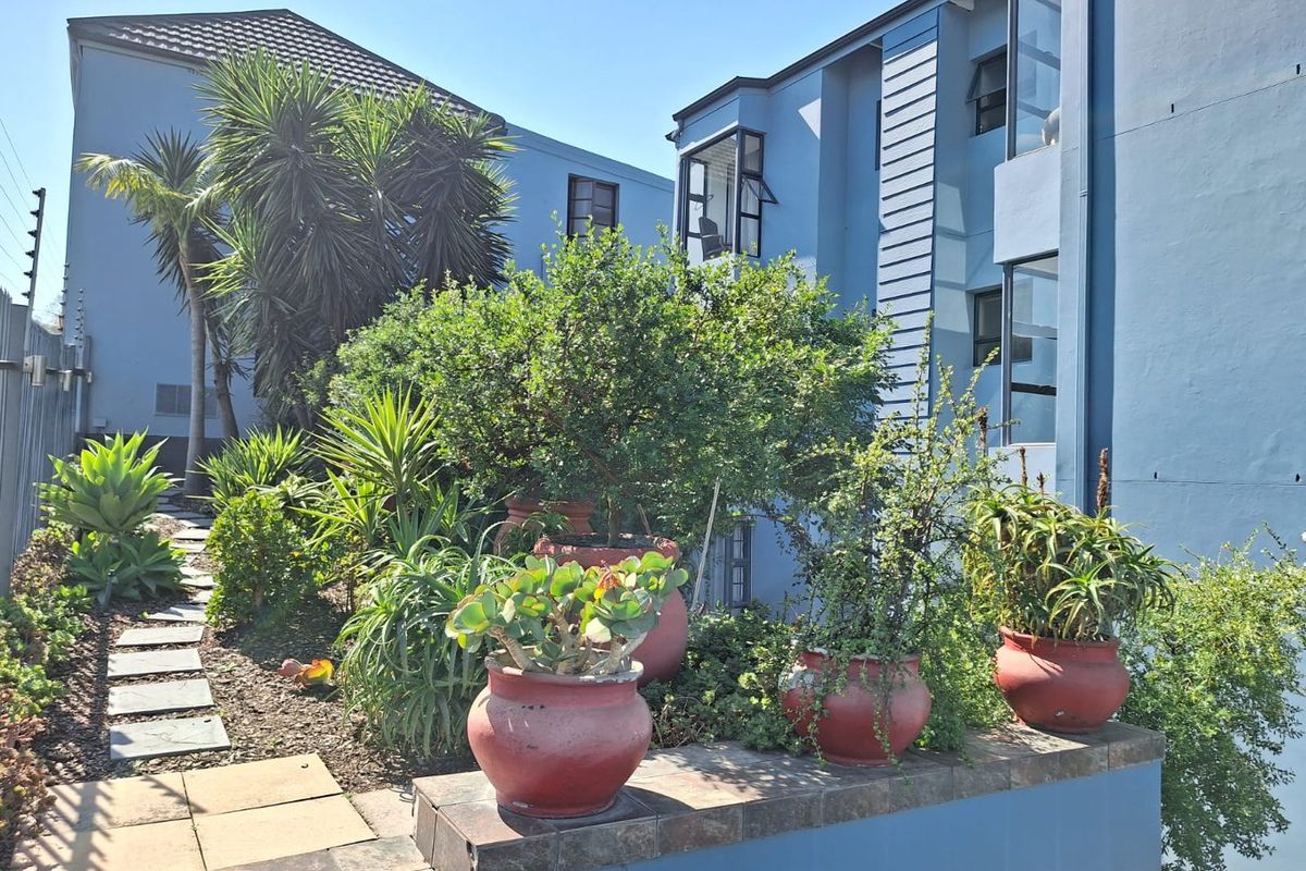 Relaxed Knysna living steps from shops, restaurants and coastal hikes, with a private patio and built-in braai overlooking a neat garden. Two bedrooms, one bath, underground parking.