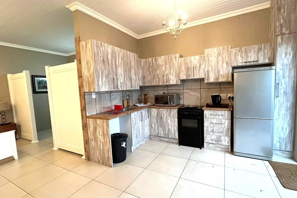 Relaxed golf-course living on Mashie Golf Course in Langebaan with a private ground-floor flat, its own entrance and fully walled pet-safe yard. Open-plan layout with one bedroom and bath.