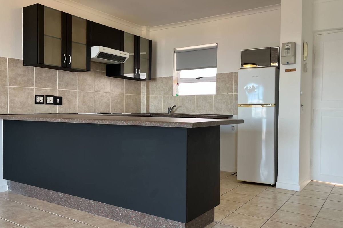 Seaside lifestyle with sweeping ocean views and balcony with built-in braai, steps from shops. Open-plan kitchen and living, main en-suite, second bedroom and covered parking.