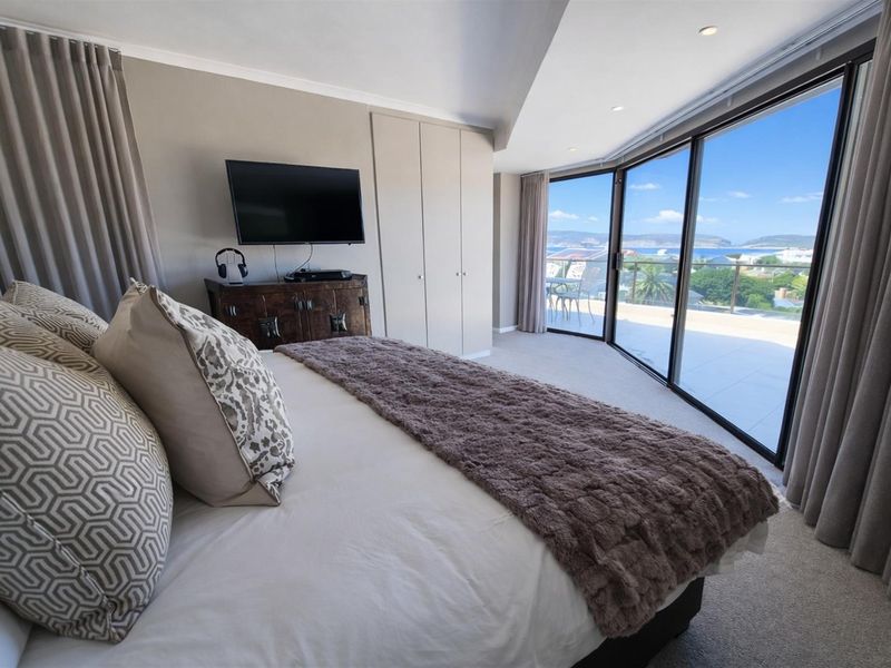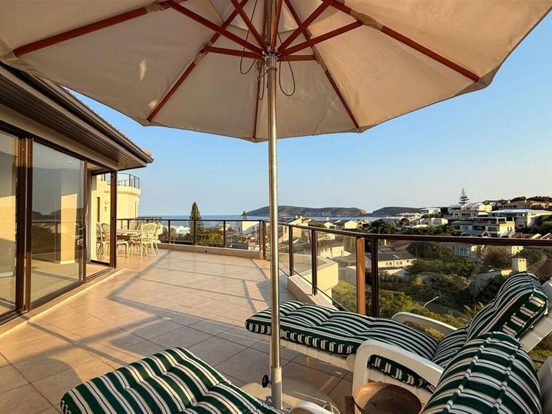 Coastal living steps from Beachy Head Drive in Longships, enjoying sweeping Robberg views from a generous balcony; fully furnished, modern open-plan kitchen, private main-bedroom layout — four beds, three baths.