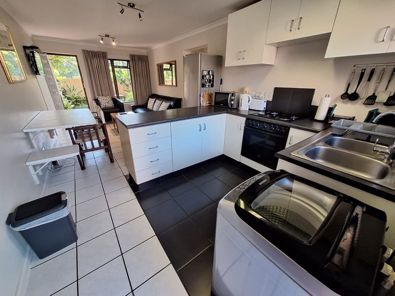 Work-from-home retreat in Plettenberg Bay, steps from the blue-flag beach, set in a private garden with a dedicated gardener. Fully furnished one-bedroom, one-bath with covered parking.