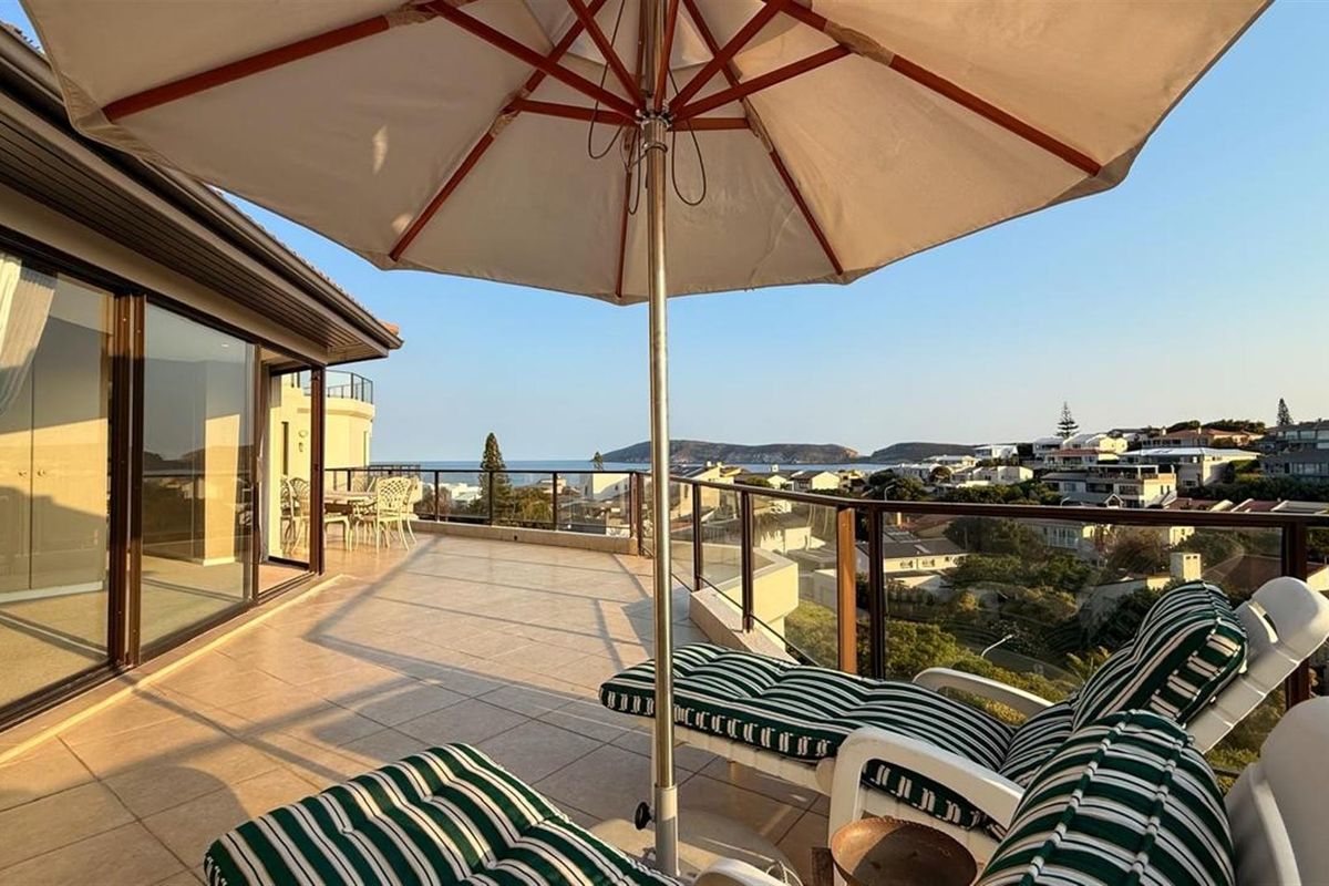 Coastal living in sought-after Longships near Beachy Head Drive, with an open-plan lounge/kitchen flowing to a generous balcony overlooking Robberg — four bedrooms, three bathrooms.