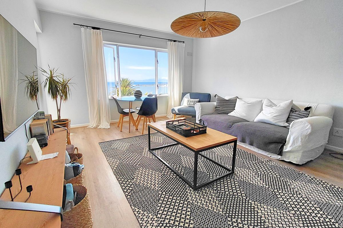 Wake up to sweeping sea and mountain views in this light-filled ground-floor apartment, featuring an enclosed balcony with bespoke wooden counter, galley kitchen, two bedrooms, renovated bathroom, secure parking.