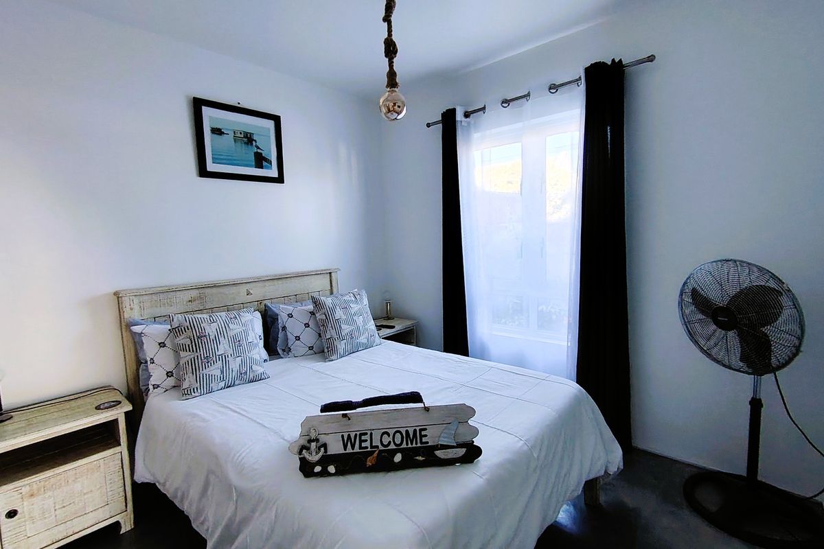 Upon entering through the expansive glass doors, you'll be welcomed by an open-plan kitchen and living area that promotes a warm and inviting atmosphere. The kitchen is fully equipped with essential appliances, including a fridge, a 2-plate stove/oven, a microwave, and a kettle, making meal preparation effortless. The spacious bedroom features a comfortable double bed, while the en-suite bathroom includes a shower, toilet, basin, and built-in cupboard, ensuring both privacy and practicality. Additionally, the flat is fitted with fibre internet, allowing for seamless connectivity and the convenience of working from home. A free-standing fan is also provided to keep you cool during those warm summer days.