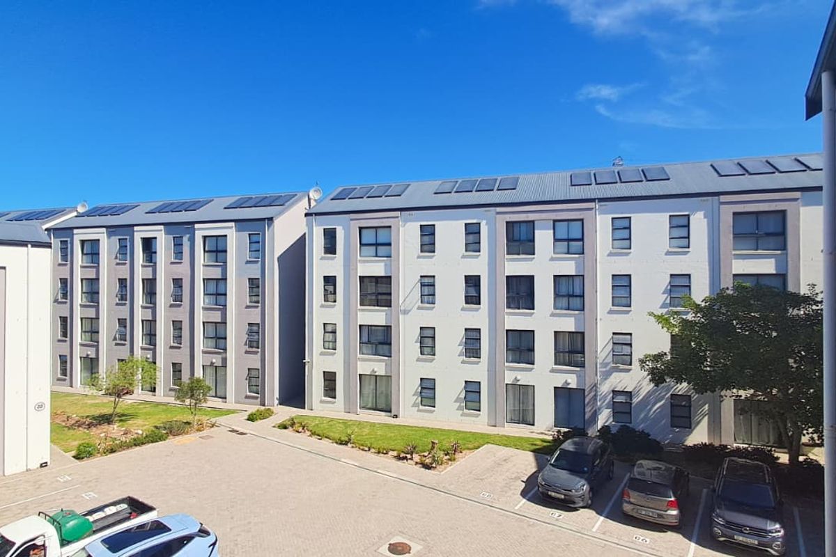 Central lifestyle ideal for young professionals and students, minutes from Stellenbosch, Somerset West and Strand — spacious open-plan kitchen/living, communal pool, biometric security; two bedrooms, one bathroom, one parking.