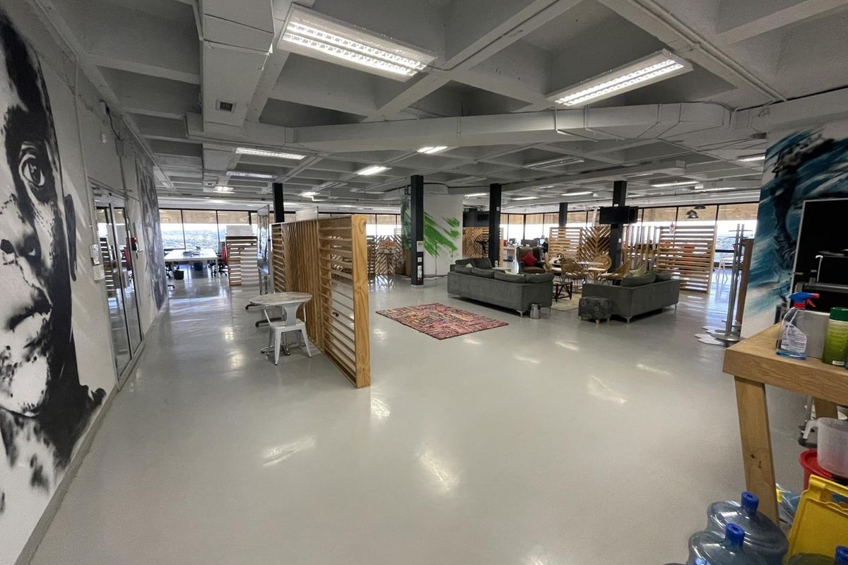 Dynamic Auckland Park workplace steps from 44 Stanley eateries and gyms, offering flexible open-plan 835 m² space with basement parking and solar backup power for uninterrupted operations.