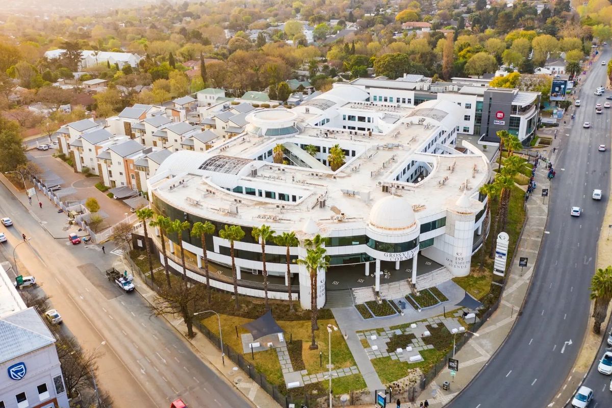 Elevate your business in lively Rosebank with a corner location at Jan Smuts and 7th — steps from Rosebank Mall and Gautrain, landscaped courtyards, backup power, fully fitted.
