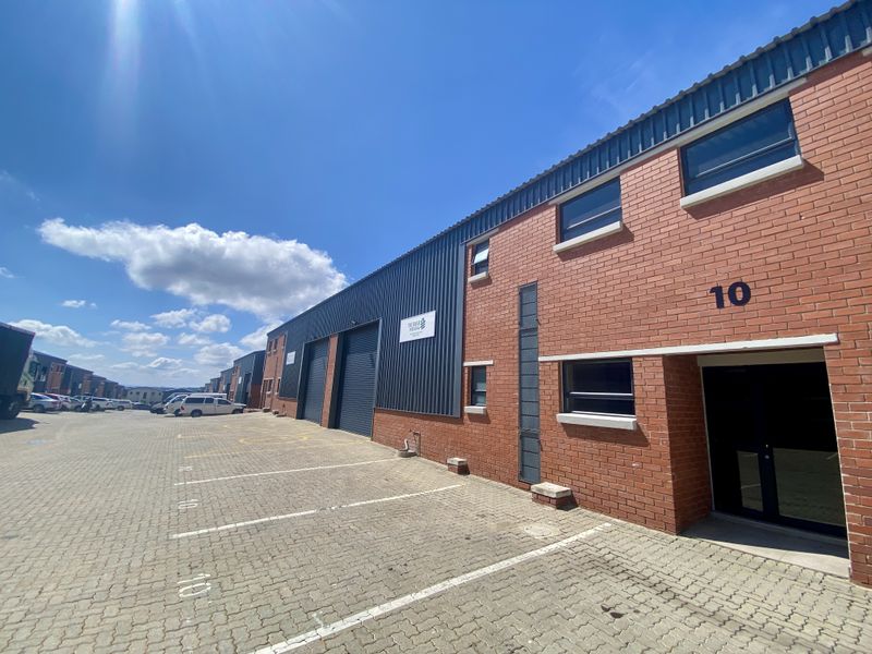 Versatile warehouse in Midrand, 329 m², with high power capacity and large roller shutter doors.