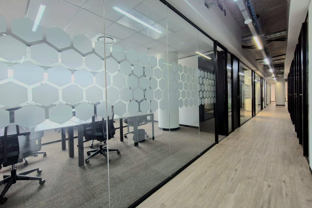This modern workspace combines private offices, collaborative coworking areas, meeting rooms, and stylish lounge spaces, creating a professional environment designed for productivity and growth.