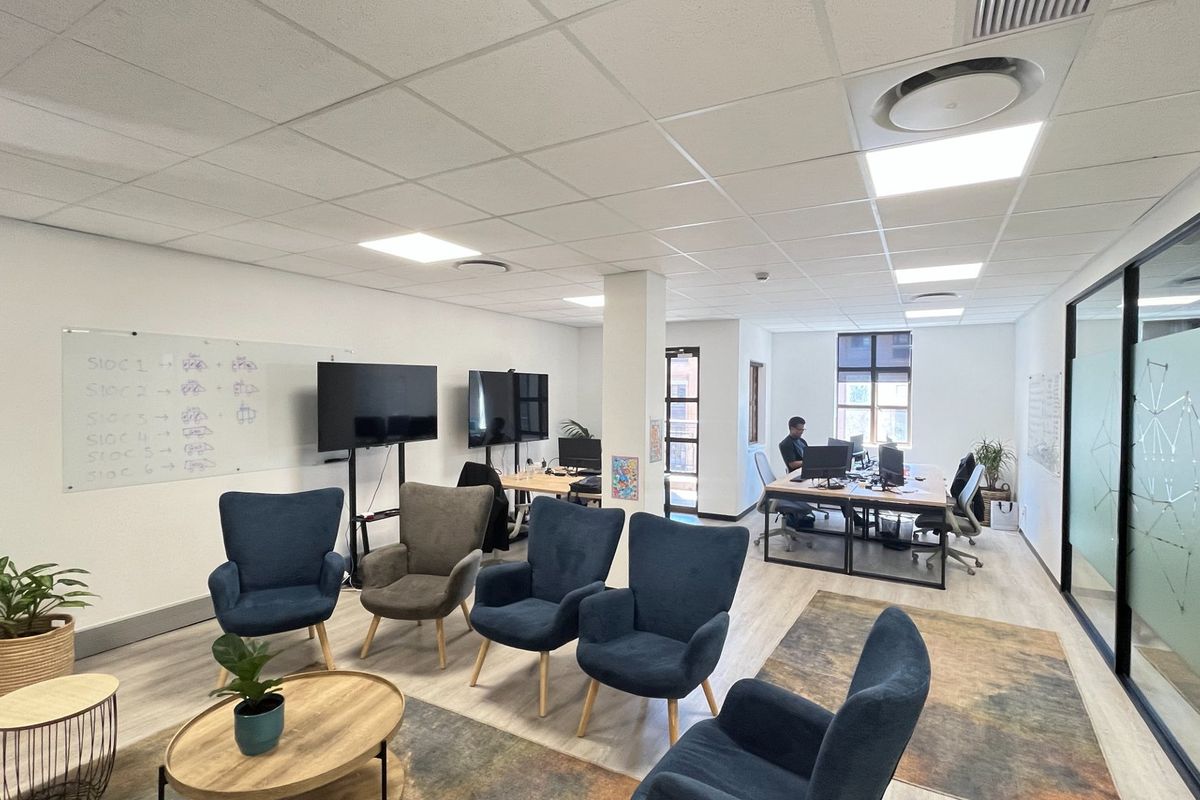 Light-filled workspace in Century City’s Waterford Precinct, 4-Star Green Rated with acoustic atrium, modern reception, onsite Roobarb café, generator backup and parking — 270 m².