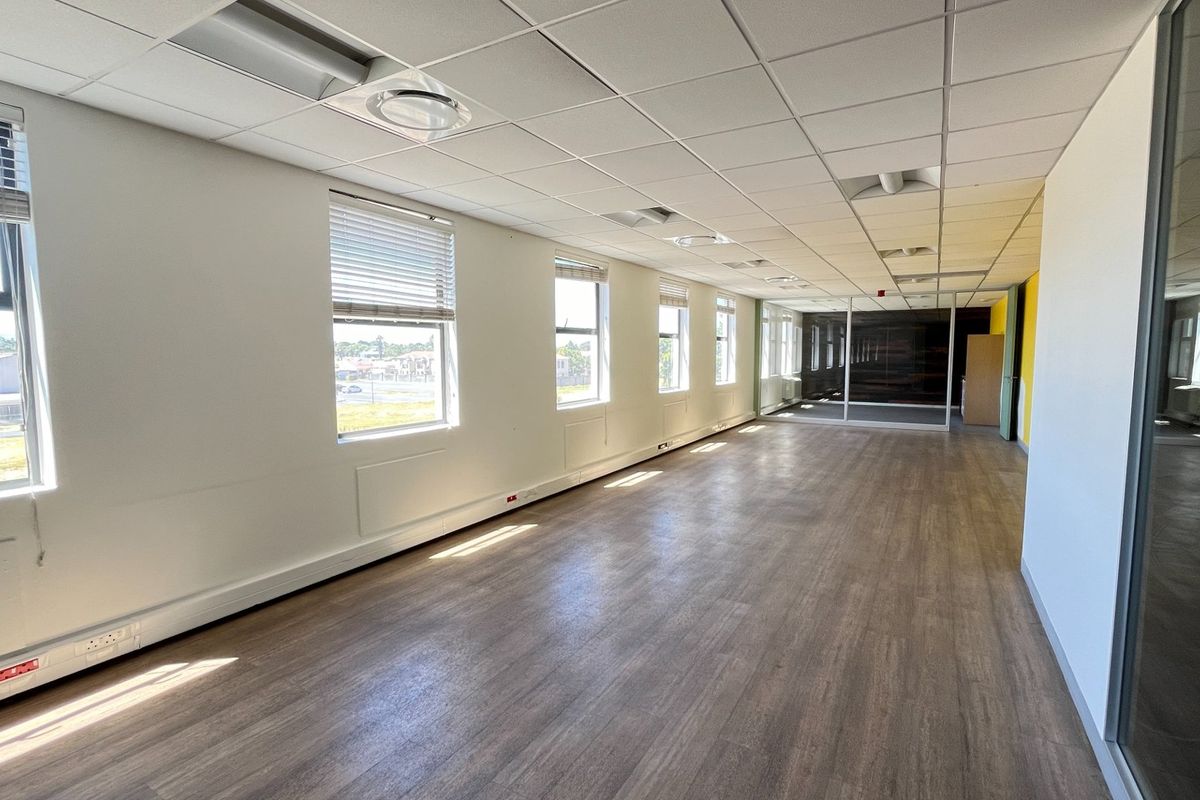 184m² first-floor office in Estuaries Business Park with 4 offices, 1 boardroom, and secure parking.