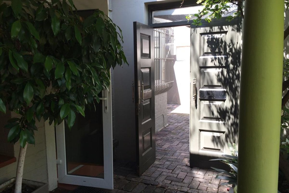 Live steps from Melville's cafés and UJ/WITS with easy CBD access; furnished one-bedroom suite features original Oregon pine floors, private patio and established garden, plus parking.