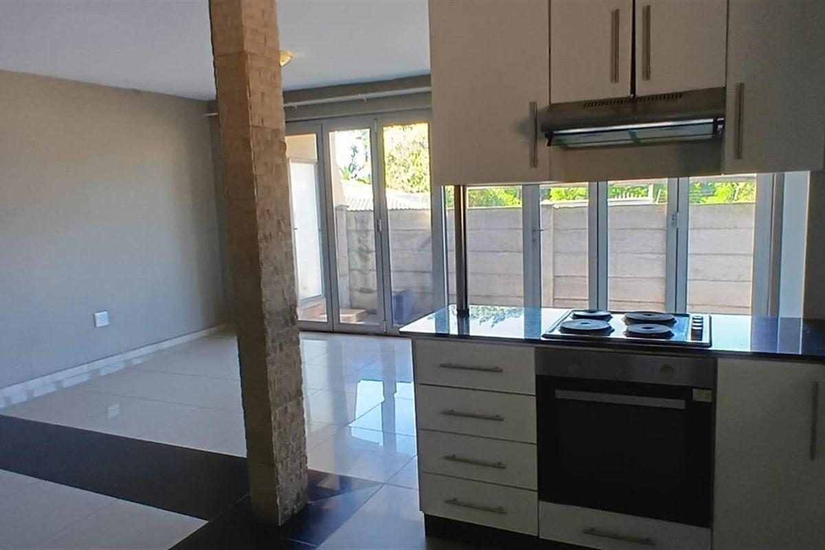 Relaxed family living in Arboretum, Richards Bay, with open-plan kitchen and lounge, air conditioning and tiled floors, secure walled yard with electric gate — three bedrooms, two bathrooms.