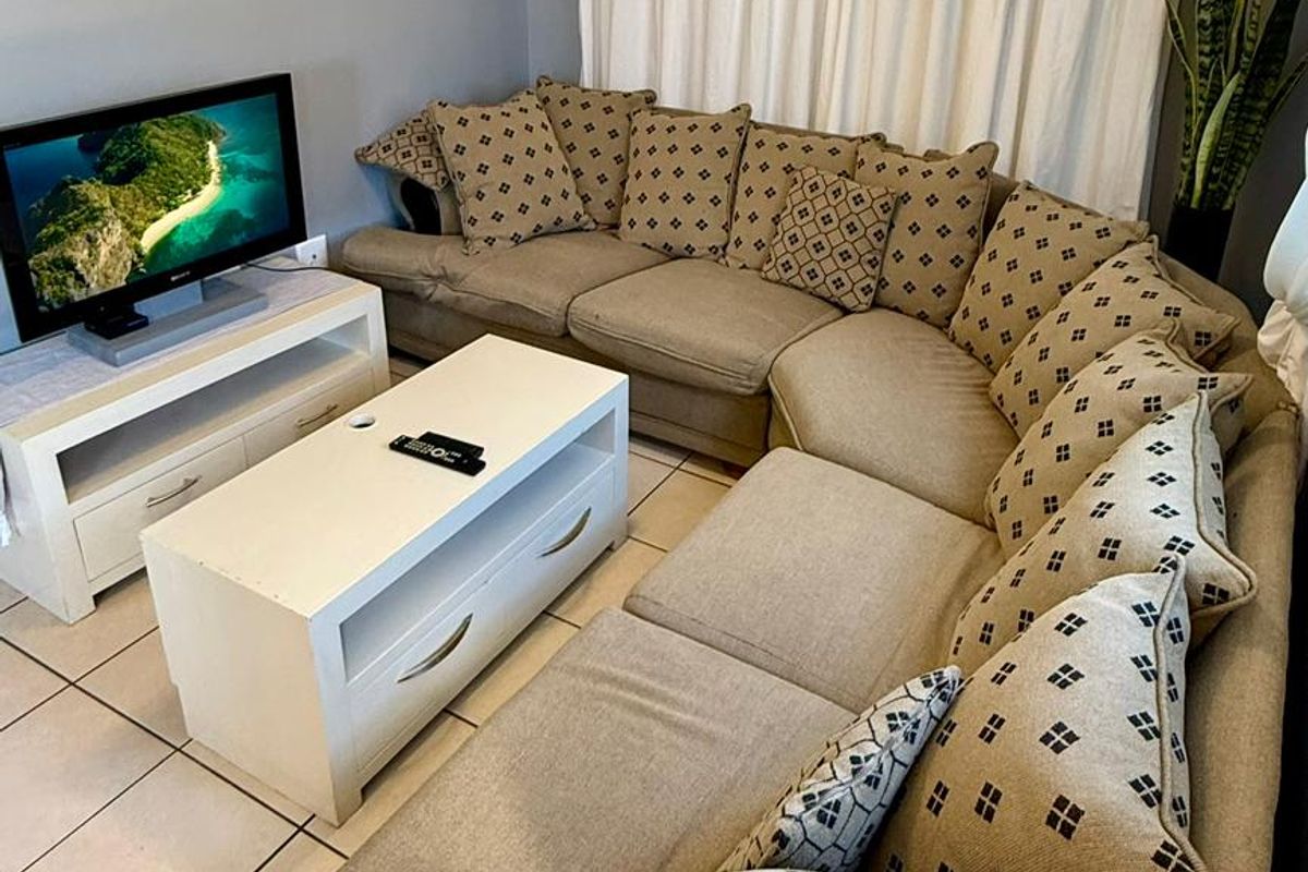 Relaxed, low-maintenance living in a well-kept complex with secure CCTV and armed response; ground-floor apartment opens to a shared garden with braai — two bedrooms, one bathroom, covered parking.