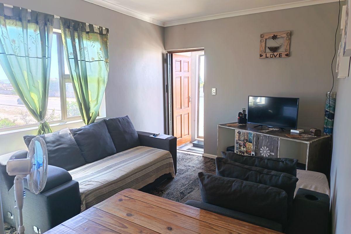 The apartment features an open-plan living area and kitchen. Please note that the kitchen does not include a stove. The living space opens out to a shared garden, which is shared with the downstairs flat (also available to rent), and includes a braai area—ideal for relaxed outdoor entertaining.