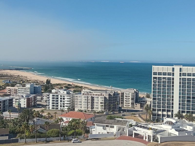 Coastal living with endless ocean vistas and harbour sunsets in prime Port Elizabeth/Gqeberha location, steps from the beach, restaurants, Boardwalk — top-floor three-bedroom, two-bath with secure basement parking.