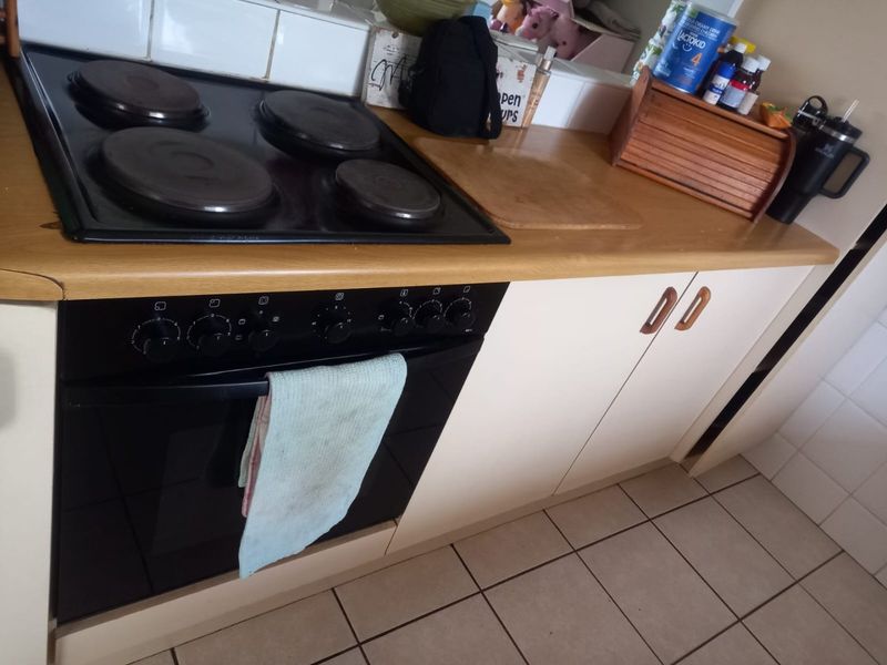 Relaxed Eikehof townhouse with easy indoor-outdoor living: open-plan kitchen opening to patio/braai and enclosed garden. Three bedrooms, one bathroom, fully tiled with built-in cupboards. Long lease available.