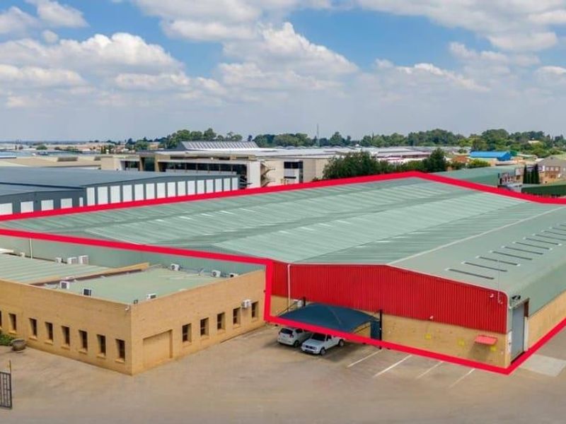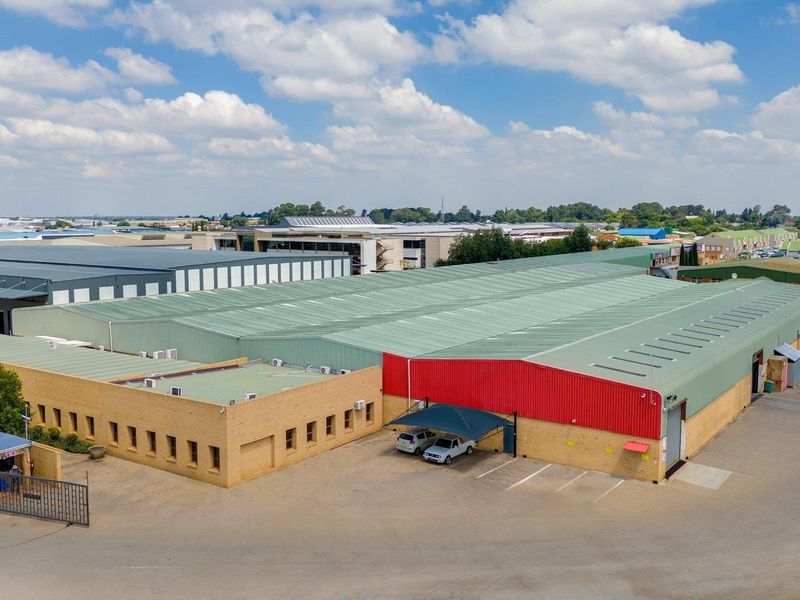 Prime industrial hub location in Hughes with unbeatable highway access and OR Tambo proximity; expansive 6,972 m² facility features Category 4 sprinklers, multiple loading bays and large yard