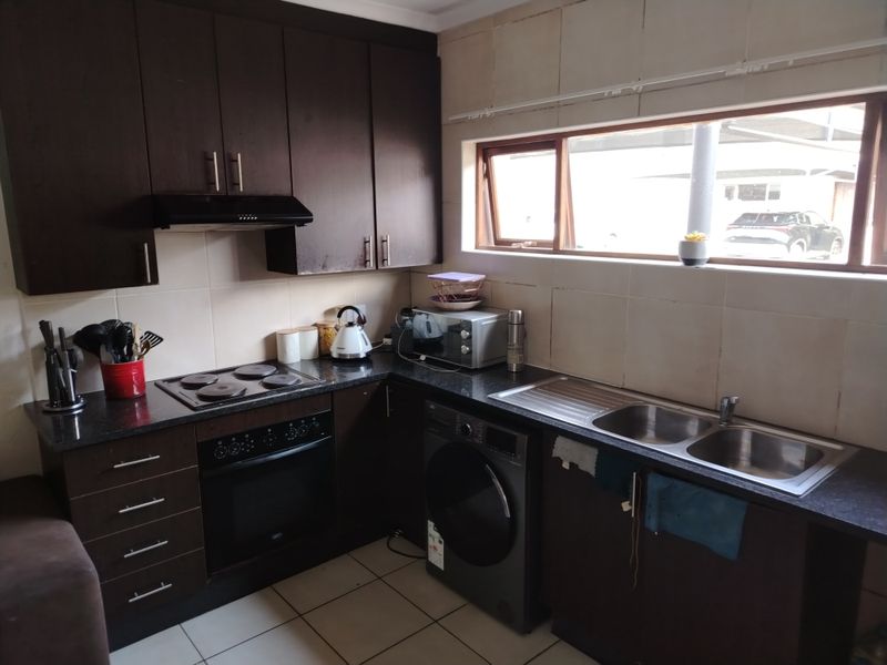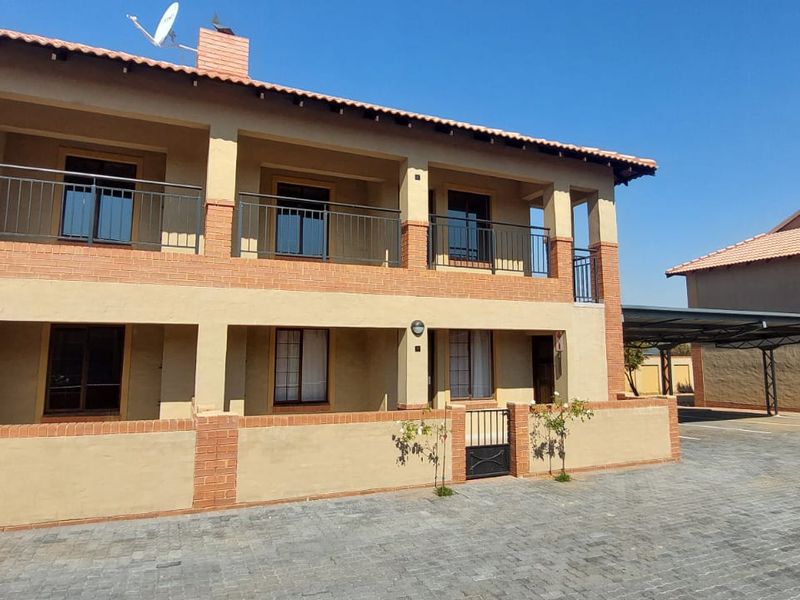 Relax in a secure, family-friendly complex near Carnival Mall and Carnival City — open-plan living with a balcony braai, play area, two bedrooms, one bathroom and covered carport.
