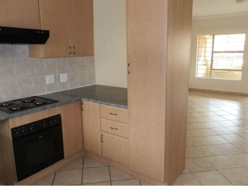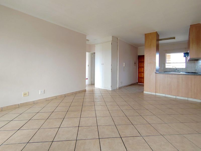 Relaxed ground-floor living with private garden patio in a friendly complex offering pool and braai facilities; open-plan kitchen, two bedrooms and single lock-up garage, small dog allowed pending BC approval.