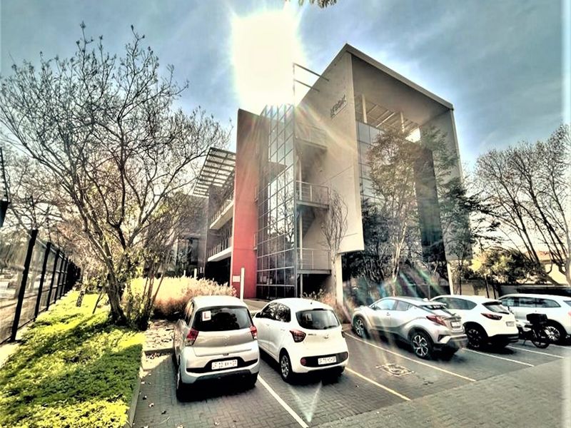 152m² first-floor office in Rosebank, featuring 2 bathrooms, boardroom, 2 private offices, and basement parking.