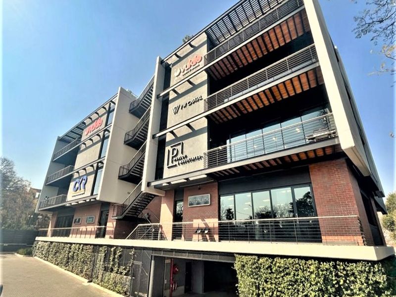 Second-floor office space for rent: 821m², 2 bathrooms, prime location on Oxford Road, Rosebank.