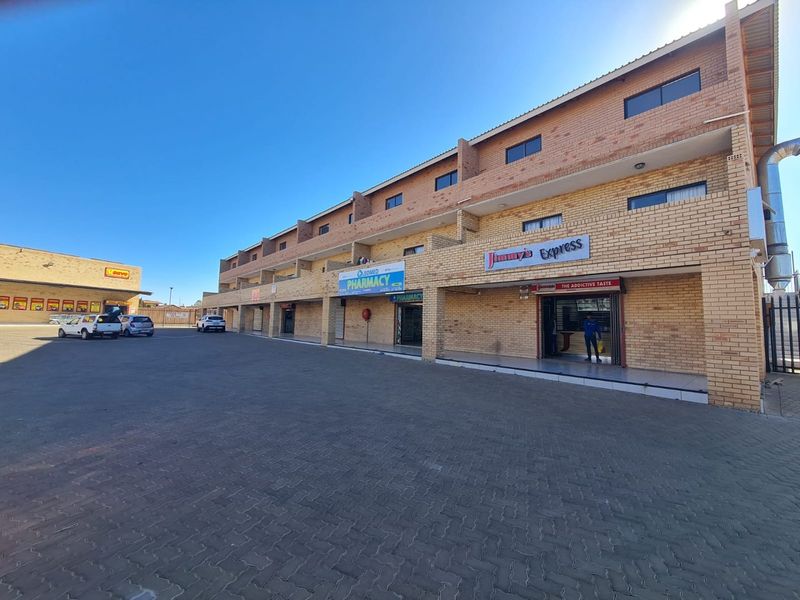 Set up shop in Volta Centre, Ext 10 Lenasia — bustling suburb hub near schools and transport, 100sqm tiled units with roller shutters, CCTV, ample parking, anchored by USave and Jimmy's.