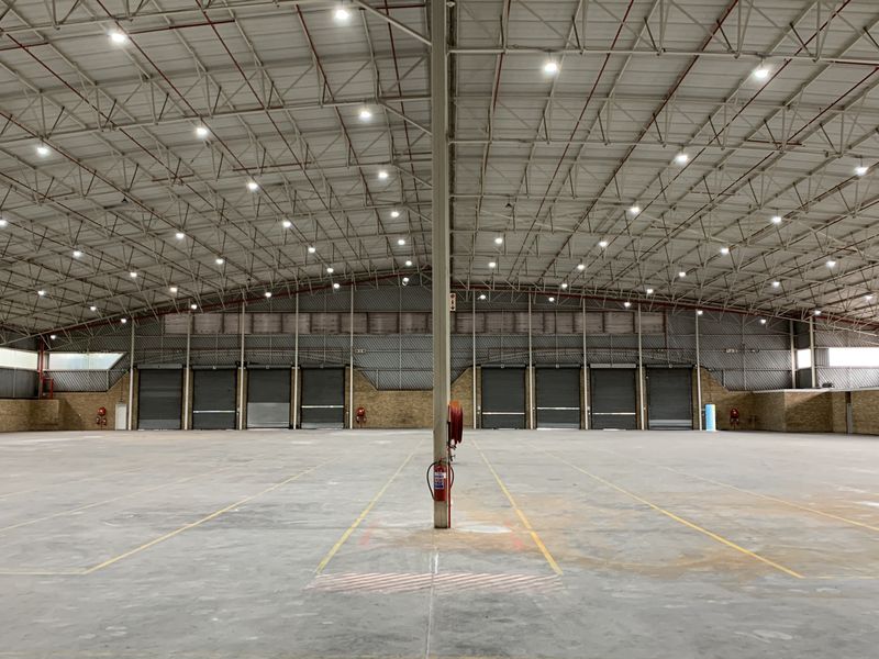 Warehouse for rent in Longmeadow, Johannesburg: 6 bathrooms, 7671 sqm total size, 6504 sqm warehouse, 1167 sqm office.
