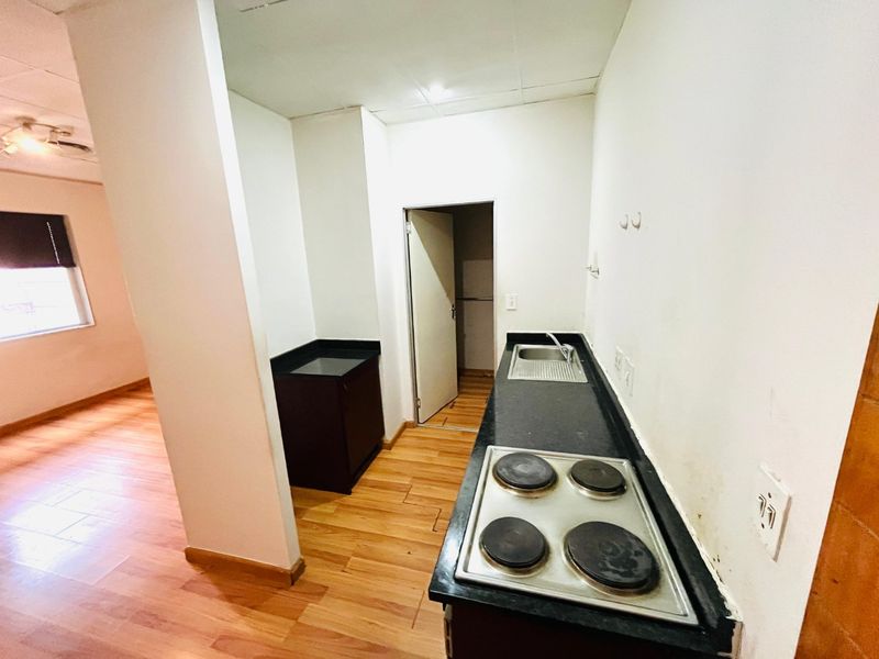 Effortless city living in Marshalltown — secure building close to transport and shops. Sunlit open-plan bachelor flat with fitted stove, built-in cupboards and one bathroom.