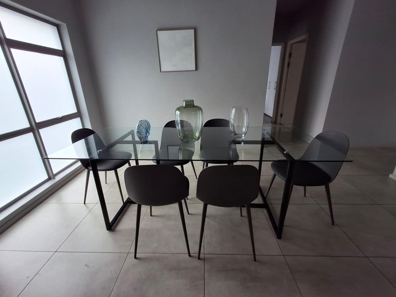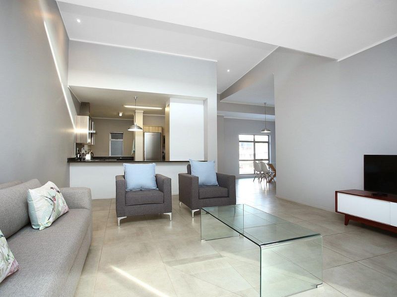 Upscale Oaklands living steps from Melrose Arch, ideal for city convenience and nightlife; furnished apartment with pool access, 24-hour security, and two covered parking bays — three bedrooms, two-and-a-half baths.