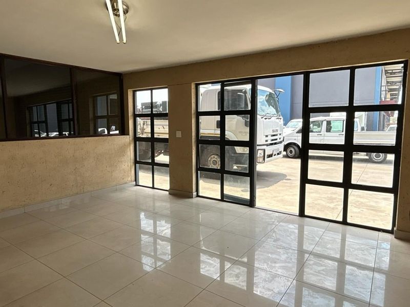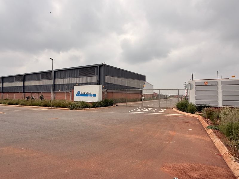 Effortless logistics and rapid access to R21/OR Tambo in Olive Wood Hub, Witfontein industrial node — private yard for truck articulation, four offices, boardroom and two bathrooms.