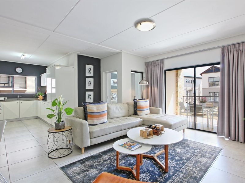Resort-style living steps from the Lifestyle Centre and Mall of Africa, with north-facing enclosed balcony, built-in gas braai and landscaped garden. Modern Scandinavian finishes; three bedrooms, two bathrooms.