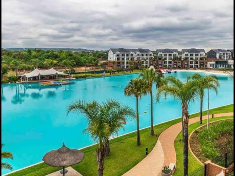 Resort-style estate living in The Blyde Riverwalk, Pretoria, with 24-hour security and access to a crystal-clear lagoon — bright open-plan apartment with one bedroom and one bathroom.
